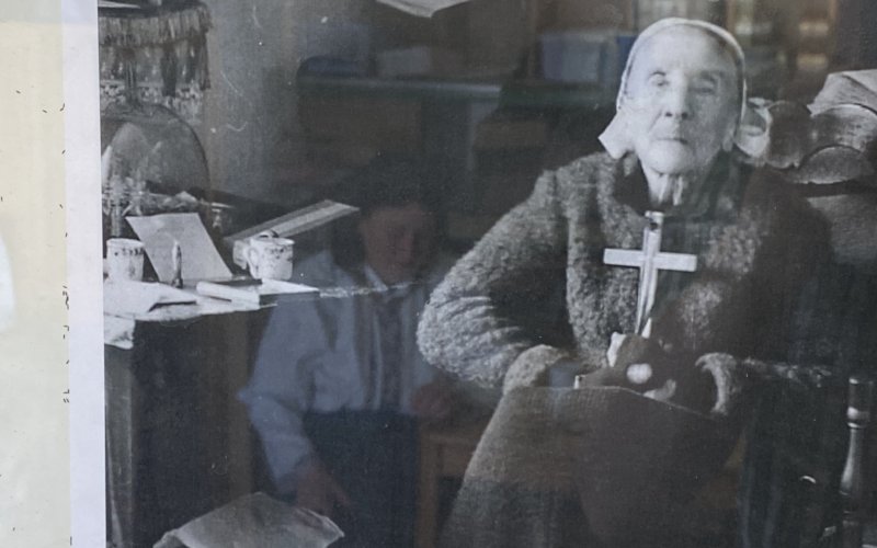 Isabelle Szczebura habite l’ancienne propriété des Jahenny. Elle est un peu la gardienne du temple et a préféré ne pas apparaître directement en photo… On devine sa silhouette dans le reflet de ce cadre de la « Sainte Blain ». (Photo : Laurent Grabet)