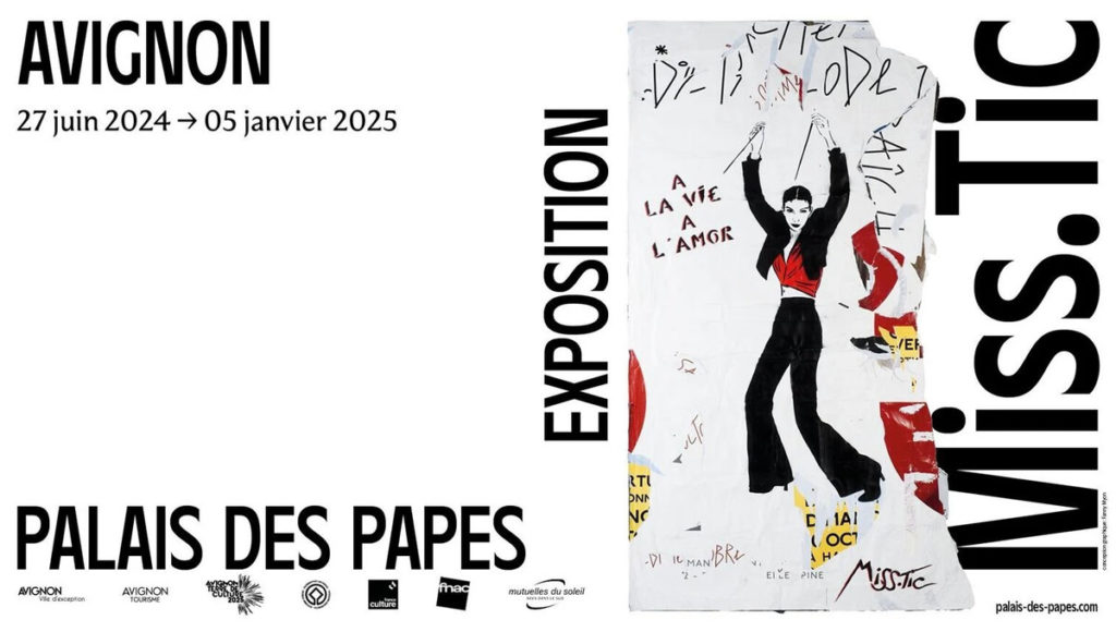 Elle voulait « la France au Maliens », ne croyait qu’en « un Éternel féminin » et partageait volontiers les dernières nouvelles de ses organes reproductifs avec le monde entier. « Elle », c’est Miss.Tic, Radhia Anouallah de son vrai nom, dont l’œuvre est à l’honneur tout au long du parcours de visite du palais des papes d’Avignon jusqu’en janvier 2025. C’est ici, dans ce bâtiment somptueux que la tête de l’Église catholique avait fui l’instabilité politique de Rome entre le XIVème et le premier quart du XVème siècle.