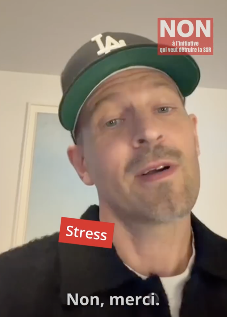 L’un d’eux incarne cette capacité presque dionysiaque à surgir là où on ne l’attend plus : toujours en colère, toujours conscient, toujours du côté du Bien, le même Stress qui nous avait déjà sermonnés sur l’UDC, puis conviés à nous vacciner lors d’une tournée Covid aux airs de fiasco industriel – entre deux spots pour la Coop ou une assurance – nous intime aujourd’hui de sauver la redevance au nom de la cohésion nationale. Qui aurait imaginé que l’ancien responsable marketing de Monsieur Propre – véridique, notre homme est diplômé de HEC – se muerait en missionnaire numérique de la vertu à l’approche de la cinquantaine, toujours la casquette vissée sur le crâne !