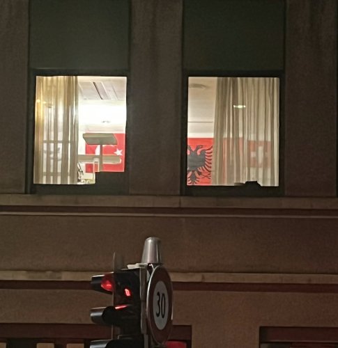 Drapeau albanais, drapeau turc et – plus modeste par la taille – drapeau suisse ornent en effet un mur de l’hôtel de Police, parfaitement identifiable depuis l’espace public. Sur fond de célébration polémique de joueurs de foot d’origine albanaise, en 2018, ou de débats similaires dans le contexte de l’armée, il n’en fallait pas davantage pour que ces images se répandent comme une trainée de poudre sur WhatsApp.