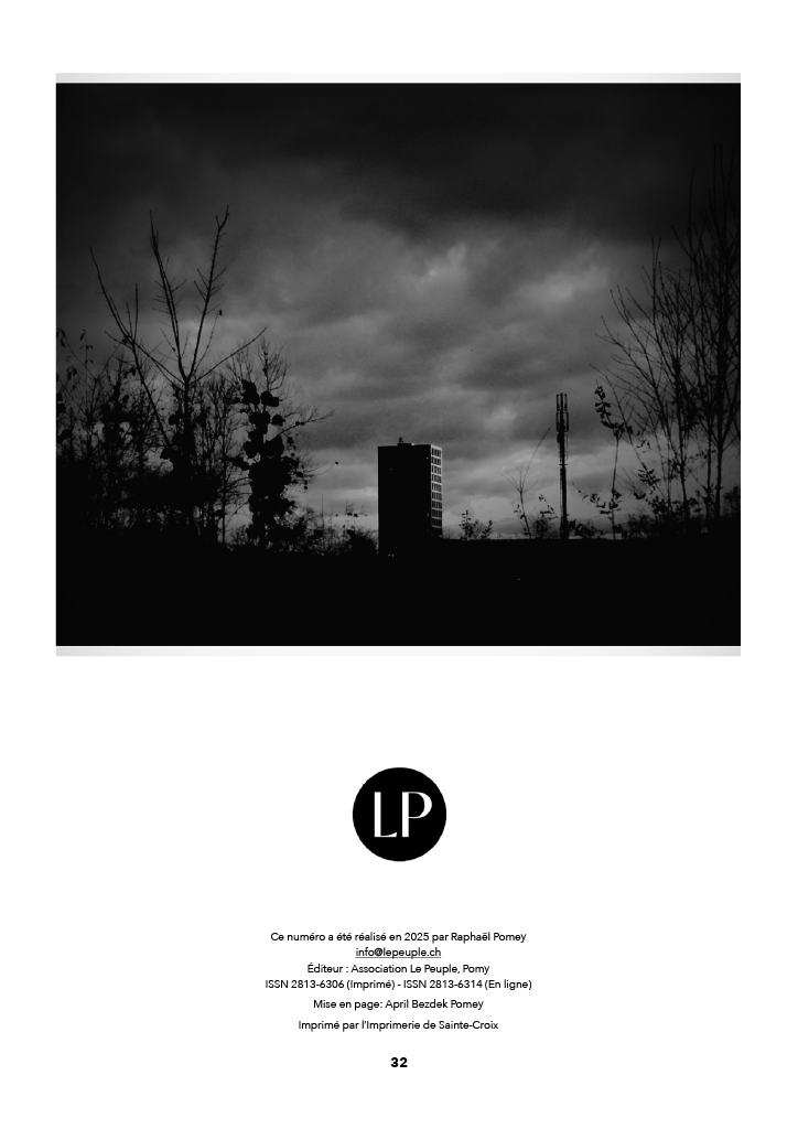 Scories dans la brume – Cuvée 2025 est un recueil d’aphorismes et de photographies signé Raphaël Pomey, fondateur de lepeuple.ch.