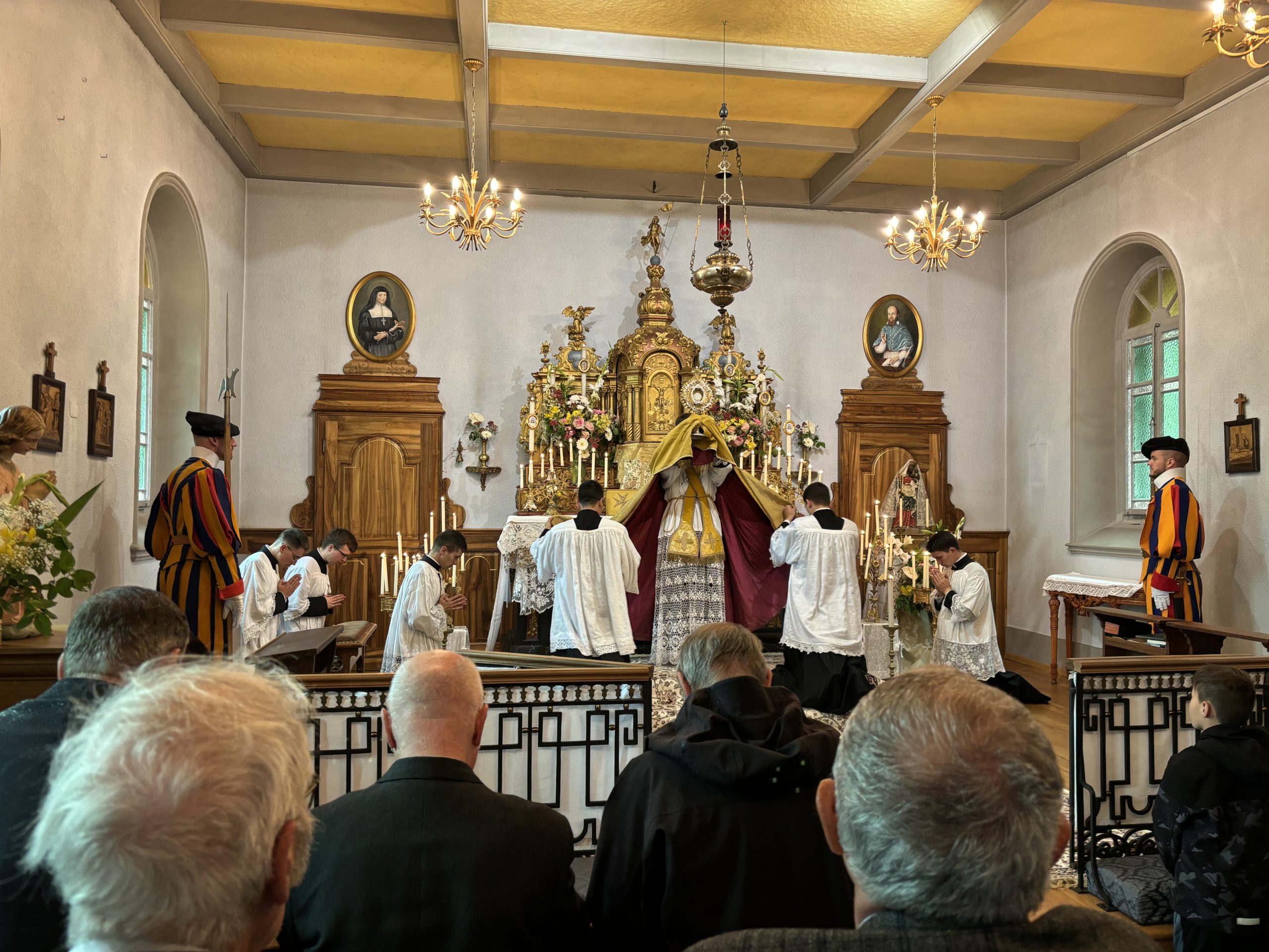 Pour les catholiques, le Christ est rééllement présent dans le Saint-Sacrement, que le prêtre expose ici à la vue des fidèles. (Image : Le Peuple)